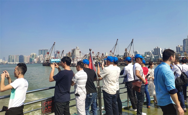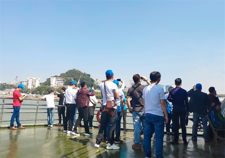 出发前要拍个”全家福”留念一下” 第一站,各人坐邮轮观光港珠澳年夜桥。港珠澳年夜桥是中国境内一座毗连香港、广东珠海及中国澳门的桥隧工程,位在中国广东省珠江口孤立洋区域内,因其超年夜的修建范围、空前的施工难度以和顶尖的制作技能而著名世界。于这里,各人能赏识港珠澳年夜桥带来的震撼视觉盛宴,感触感染世纪工程的雄伟。